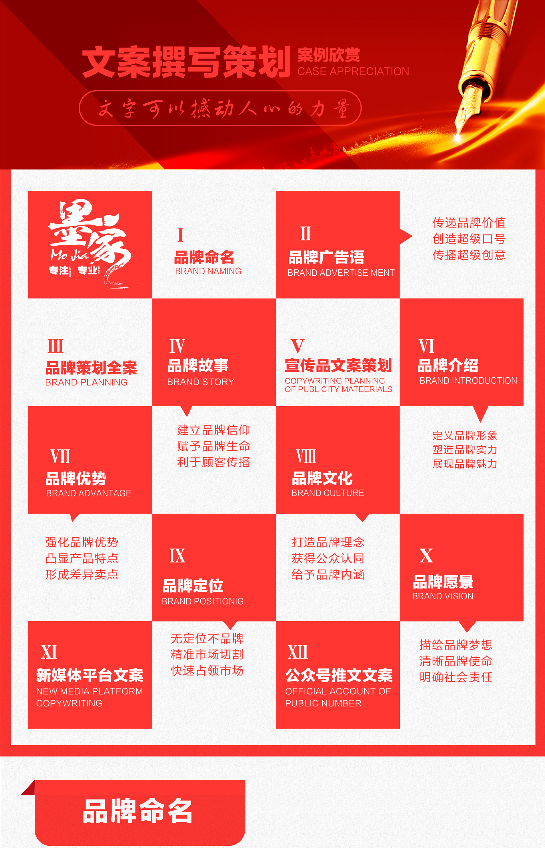 品牌文案策划品牌故事公司简介产品文案撰写广告语取名公众号运营